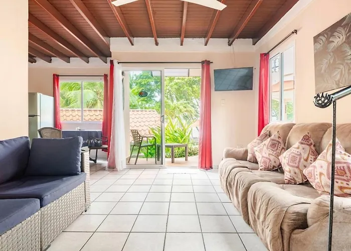 Offering a terrace with outdoor dining areas and a barbecue grill, the 4-star Jaco Surf Beachbungalow hotel is approximately 10 minutes' drive from the Jaco Ropes.